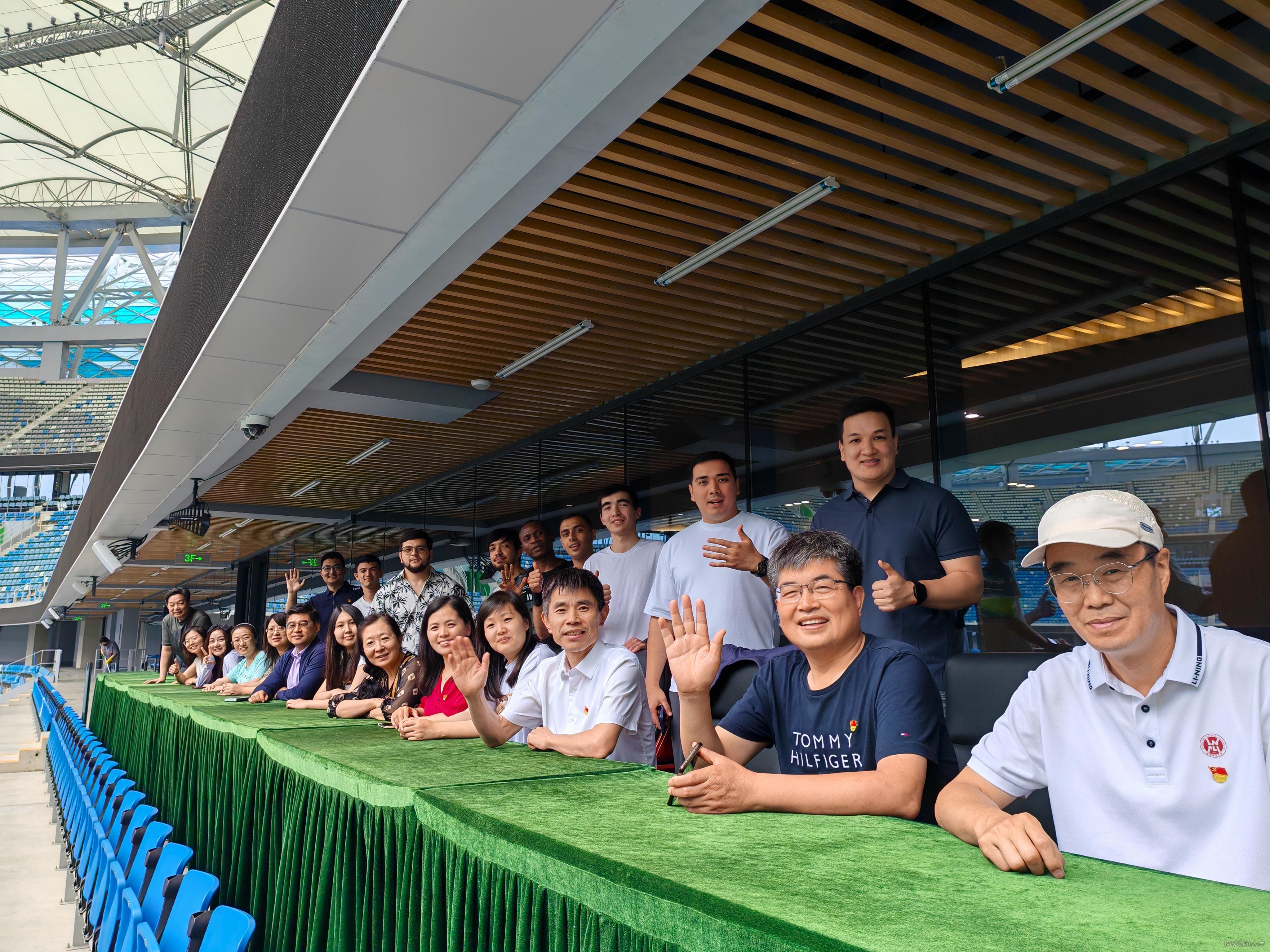近日,国际教育学院工会组织了一次特别的参观活动。学院部分教工和中外学生一同前往备受瞩目的梭鱼湾足球场,感受这座现代化体育场馆的魅力。