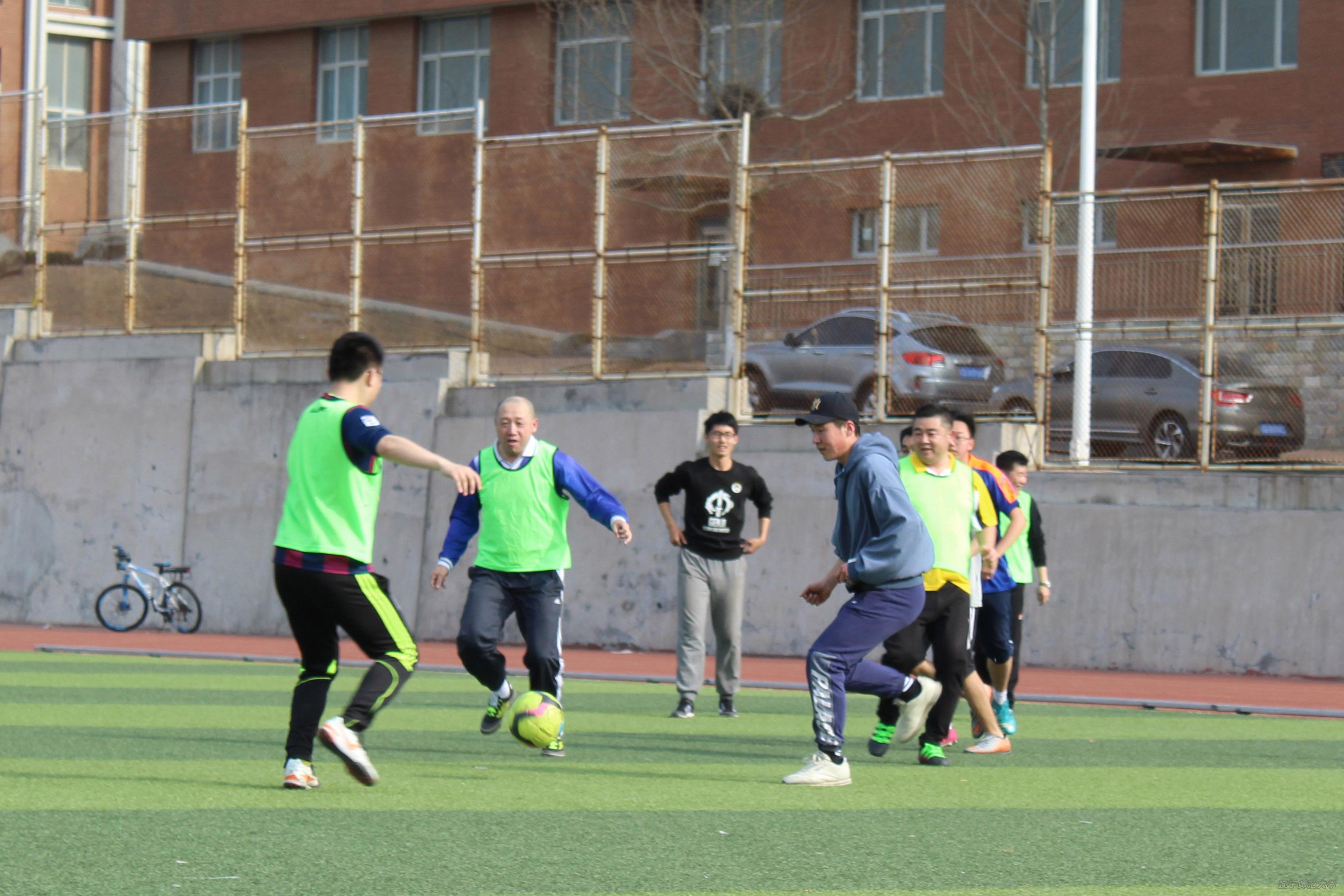 此次由学院工会组织并开展的“师生杯”足球友谊赛,在院领导和各方的关注下成功举行。参赛两队以沟通交流为目的,以友谊第一为原则,在比赛中互相学习足球技巧,增进了师生之间的友谊,促进了学生与教师之间的互动交流。